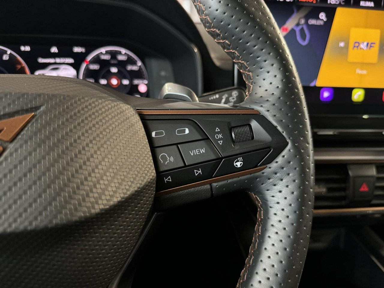 - skórzana kierownica,