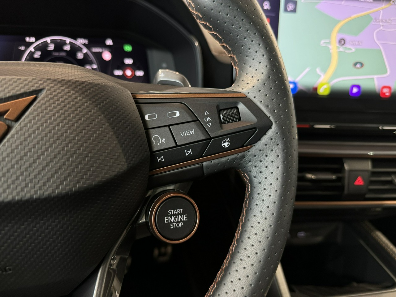 - skórzana kierownica,