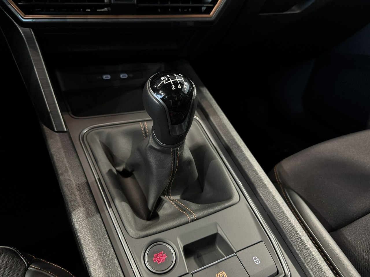 dźwignia zmiany biegów wykończona skórą,
