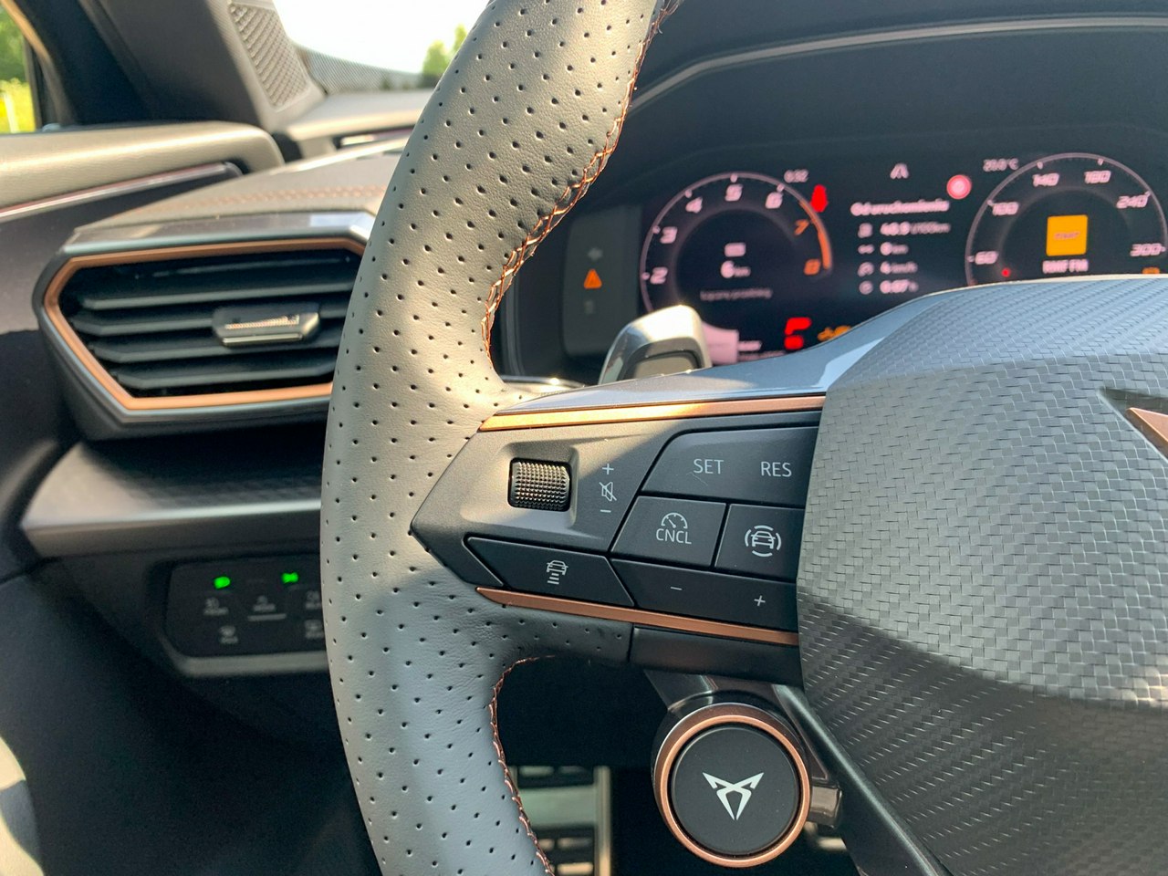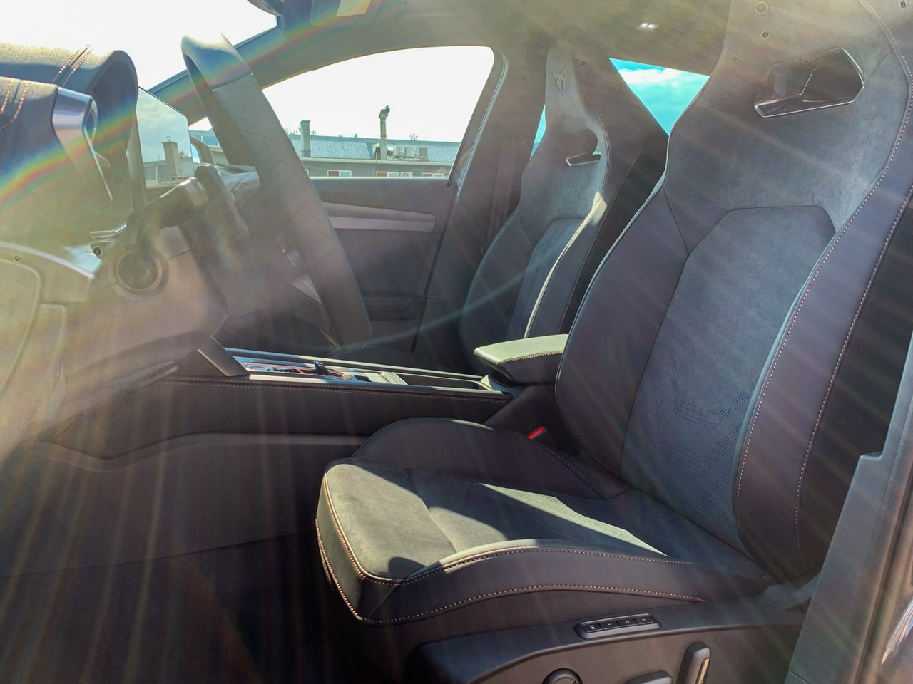 -Pakiet INTELLIGENT DRIVE: Nawigacja satelitarna z mapami z możliwością aktualizacji; CUPRA Connect Plus (subskrypcja na 3 lata); Predykcyjny tempomat (ACC) z funkcją dostosowania prędkości jazdy do znaków drogowych i danych nawigacji; System monitorowania martwego pola z funkcją wspomagania wyjazdu z miejsca parkingowego; Sygnalizacja o zbliżającym się pojeździe w czasie wysiadania; System ochrony pasażerów; Asystent aktywnego utrzymania pasa ruchu; Asystent podróży z asystentem jazdy w korku; Inteligentny asystent bezpieczeństwa