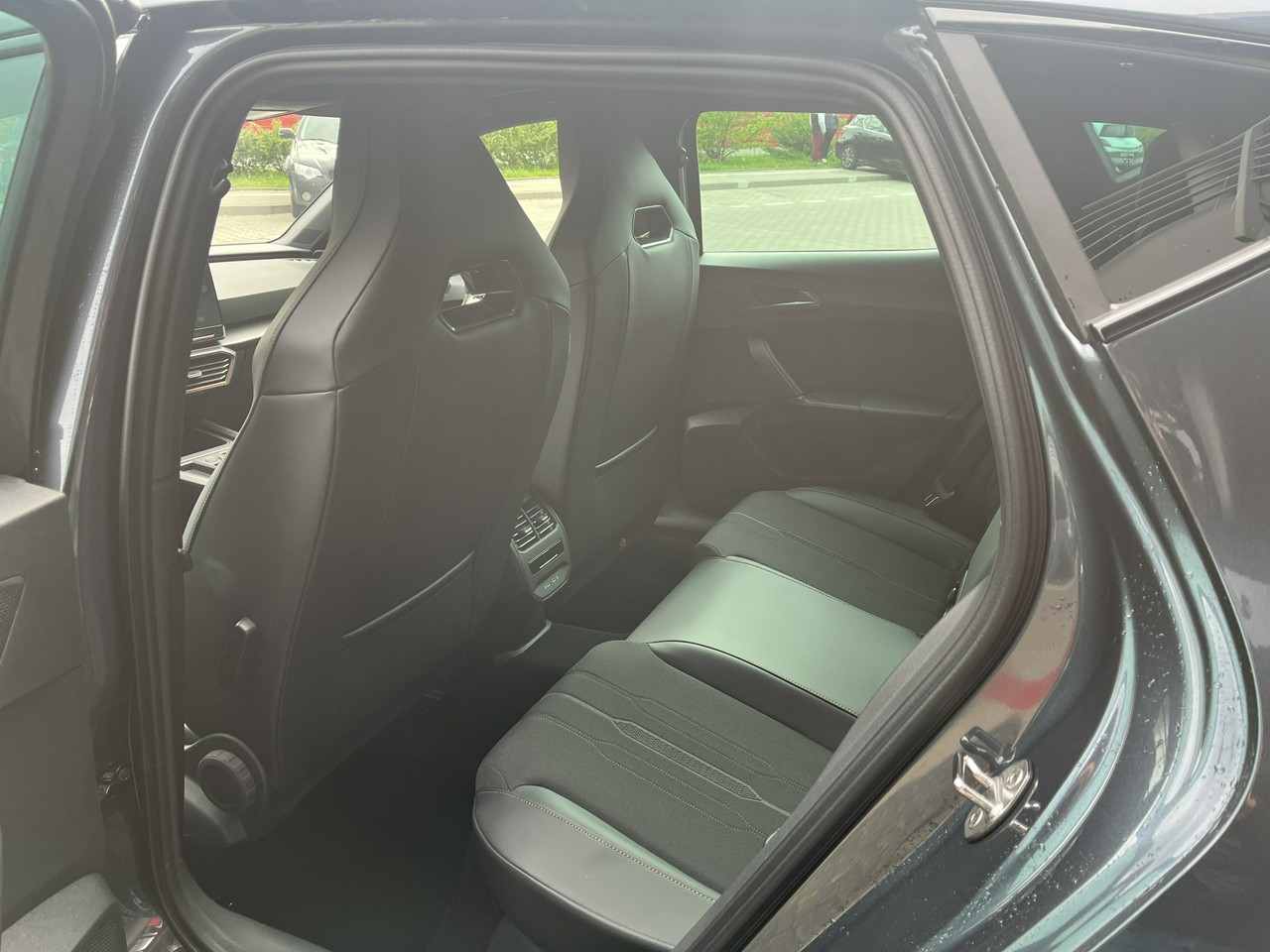 ->Sportowe fotele przednie, tapicerka materiałowa ze skórą ekologiczną z przeszyciem w kolorze miedzi