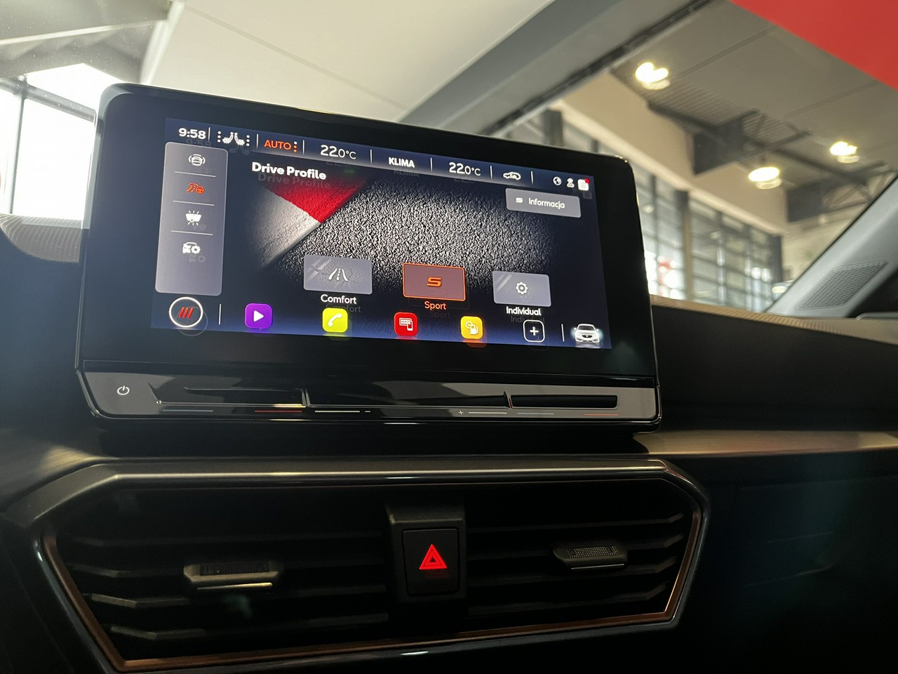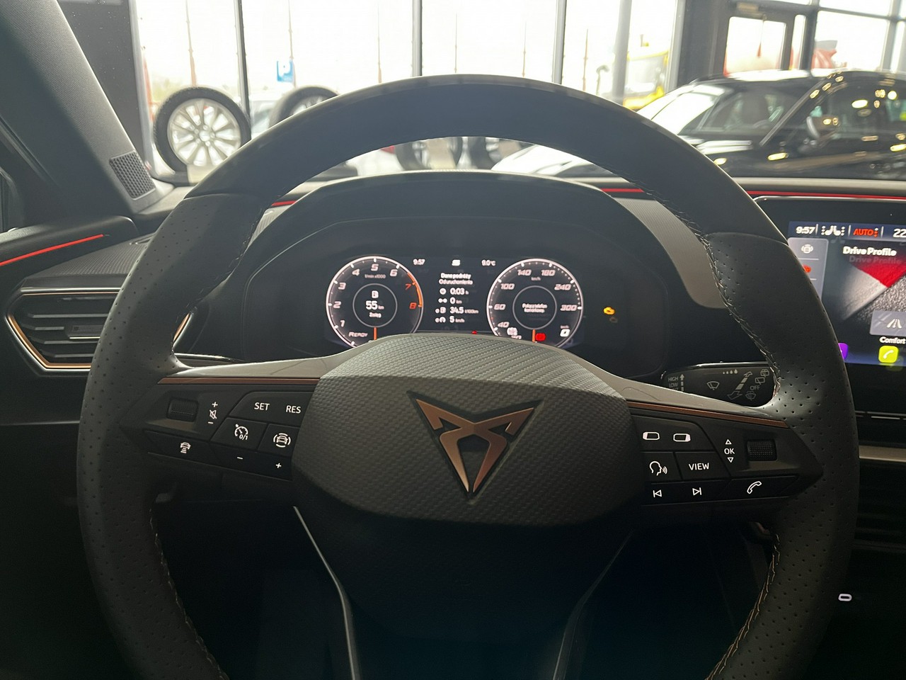 - Cupra Drive Profile: 4 profile jazdy umożliwiające zmianę reakcji silnika oraz wspomagania kierownicy
