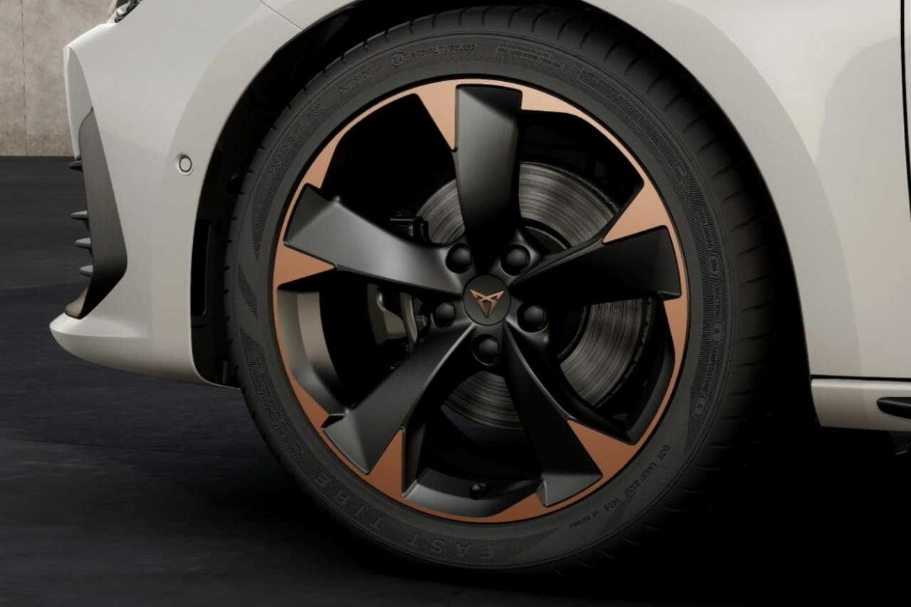 - Pakiet Design:18-calowe felgi aluminiowe CUPRA MACHINED SPORT BLACK / COPPER w kolorze czarnym z elementami w kolorze miedzi; Tylny spojler CUPRA lakierowany w kolorze czarnym; Zewnętrzne listwy progowe CUPRA w kolorze ciemnego aluminium; Sportowe nakładki na pedały w kolorze ciemnego aluminium
