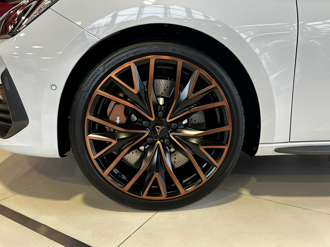 - Pakiet Performance Copper dla Cupra e-HYBRID/300/310 KM (Hamulce wyczynowe z zaciskami BREMBO z przodu w kolorze miedzi i zestawem naprawczym do opon*; Zewnętrzne listwy progowe CUPRA; 19-calowe felgi aluminiowe CUPRA MACHINED PERFORMANCE BLACK / COPPER w kolorze czarnym z elementami