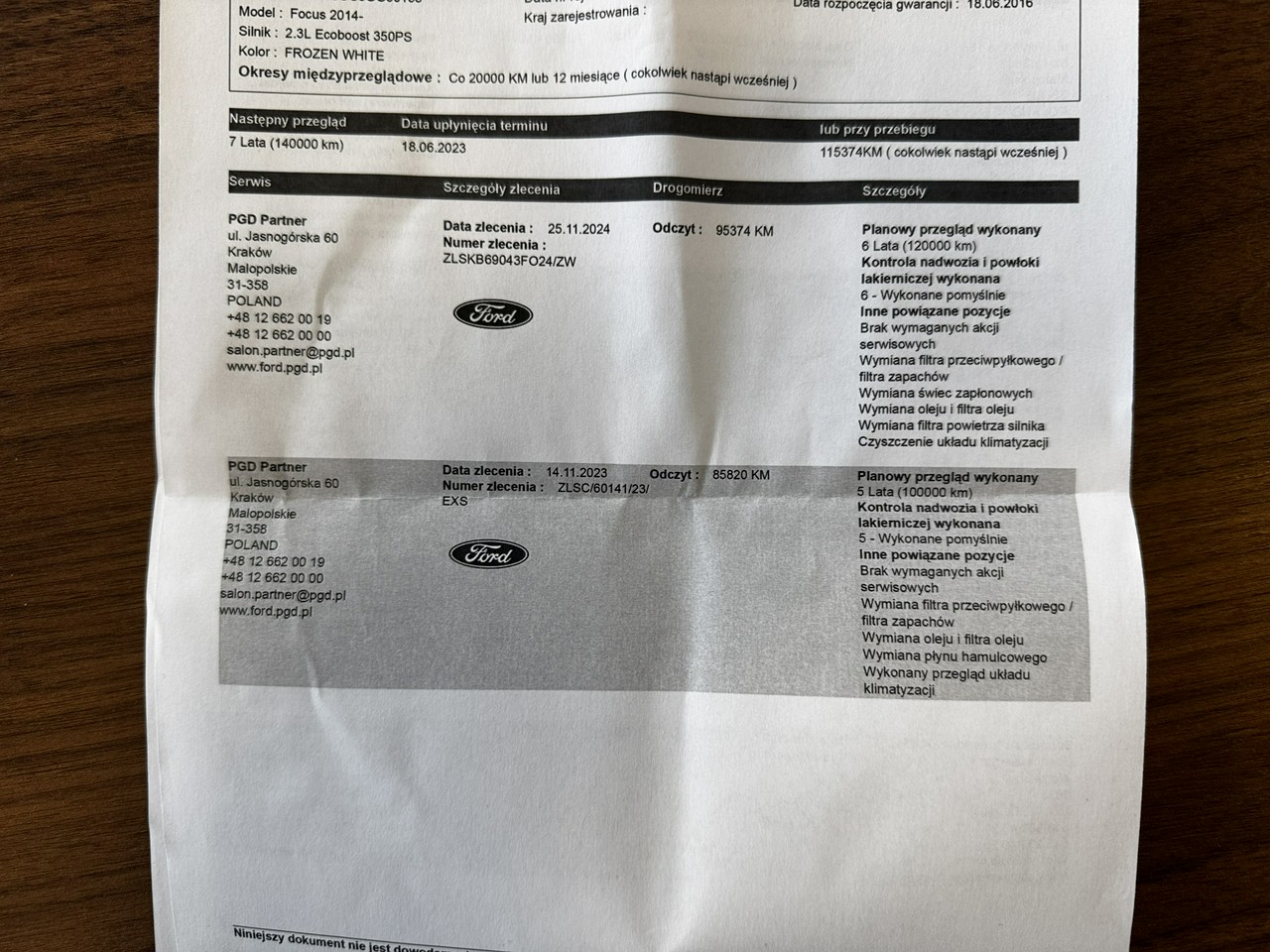 Gwarancja Ford12 do 25/11/2025 roku lub 115 374 km