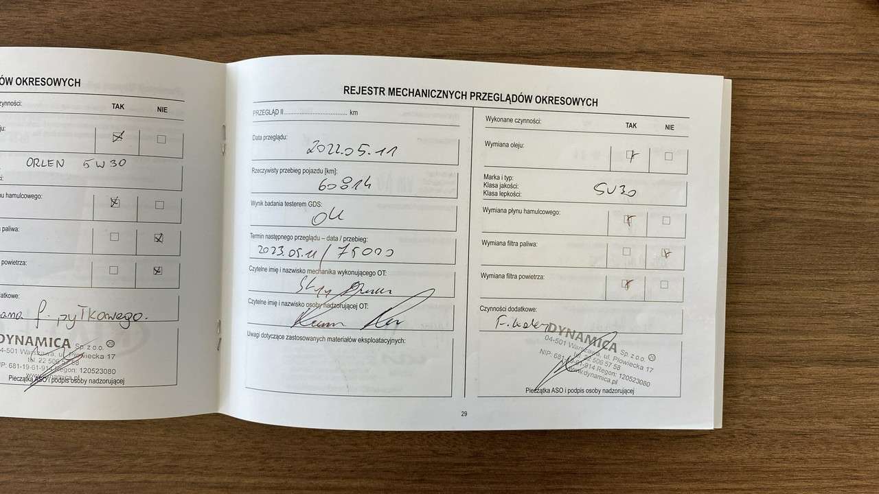 5. Bezpłatny przegląd przed sprzedażowy obejmujący: