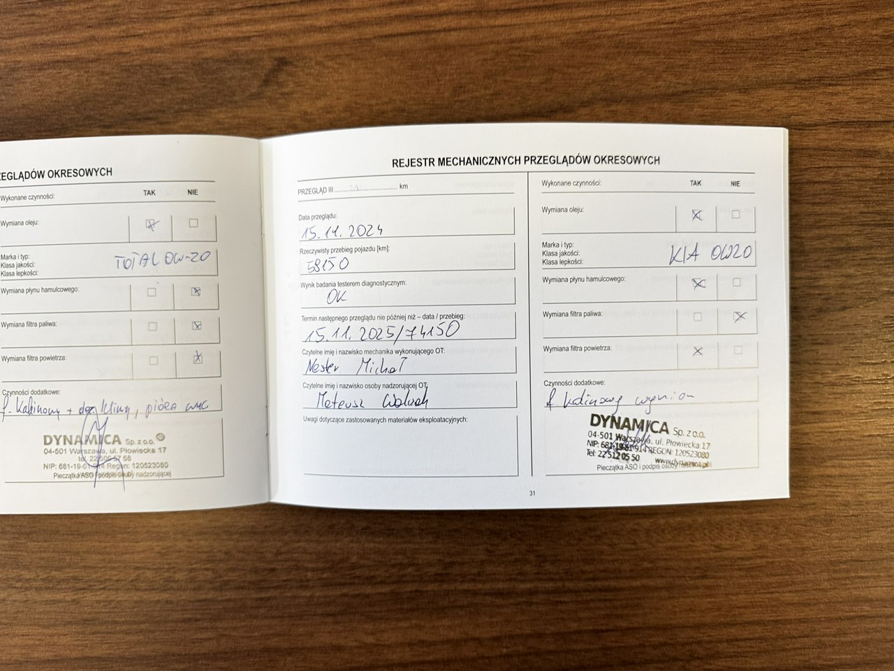 ✅ Pisemne potwierdzenie przebiegu