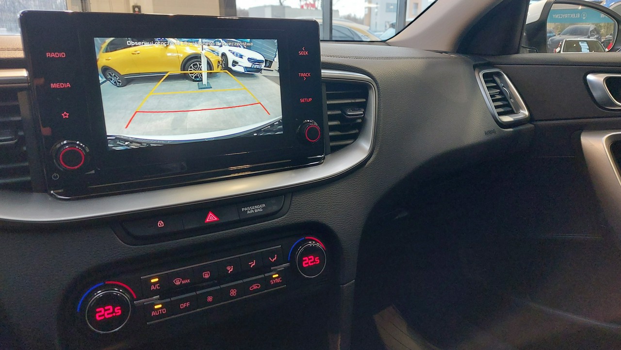 - Kamera cofania z dynamicznymi liniami ułatwiającymi parkowanie, czujniki parkowania z tyłu