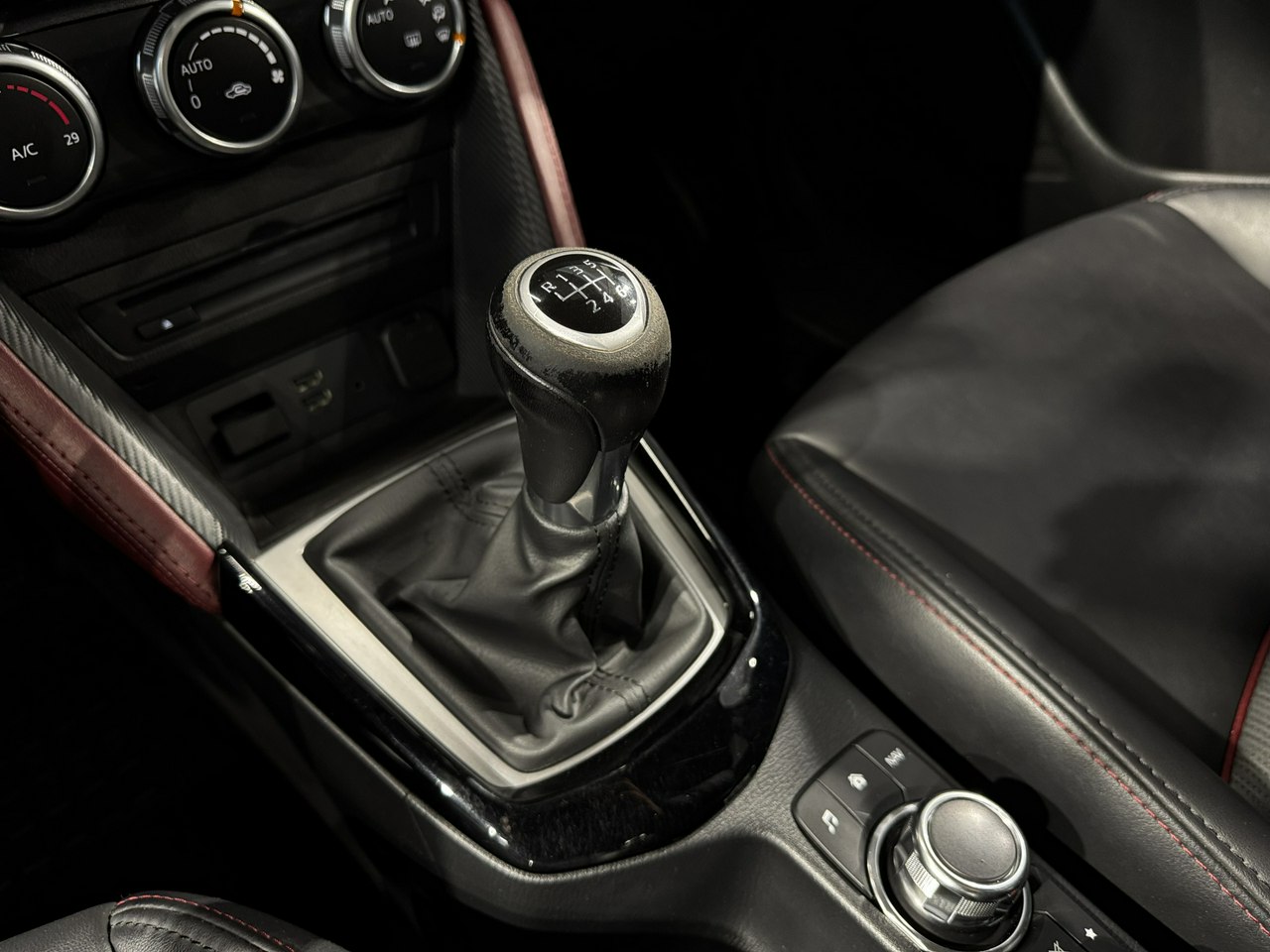 dźwignia zmiany biegów wykończona skórą,