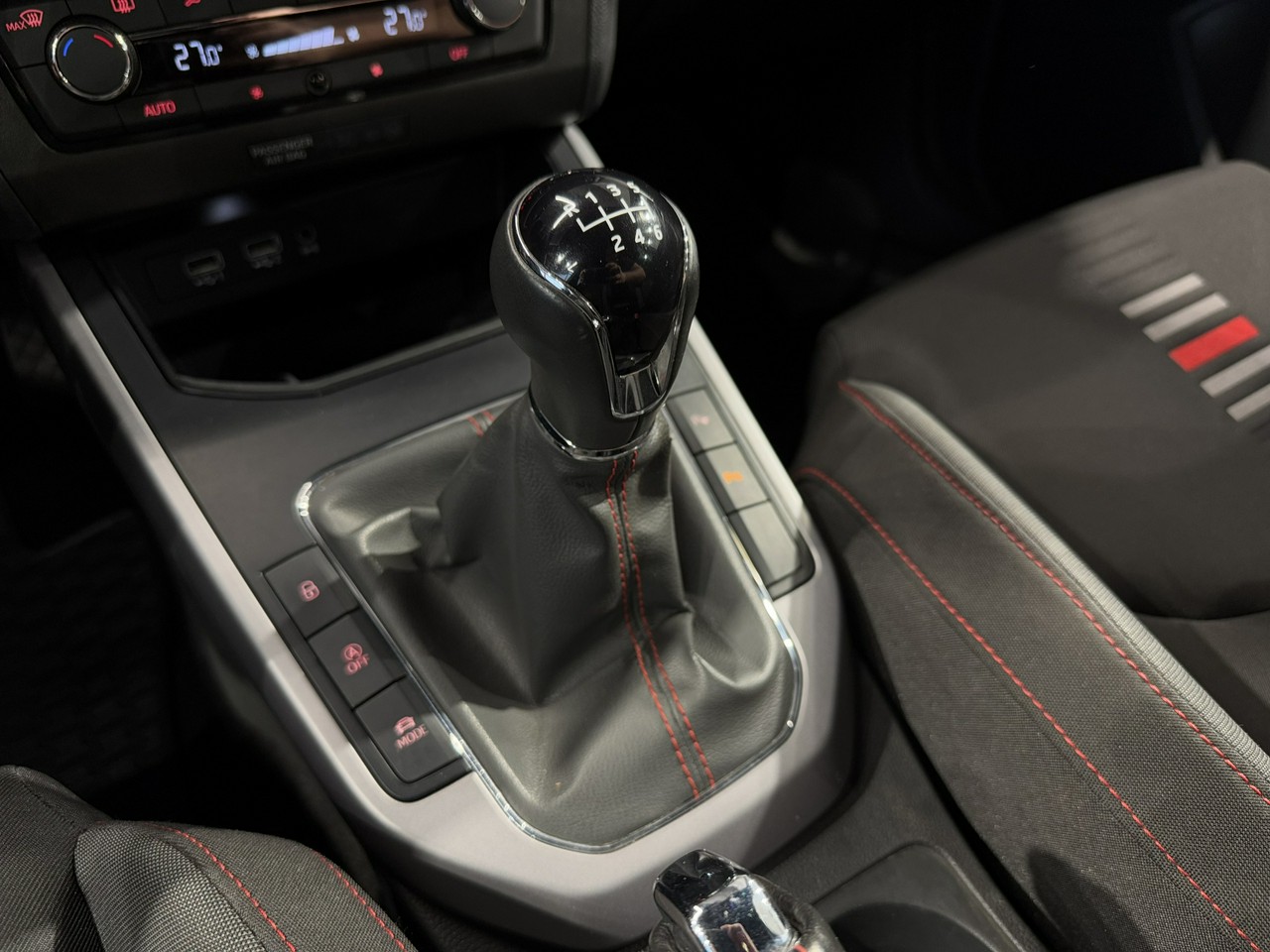 dźwignia zmiany biegów wykończona skórą,