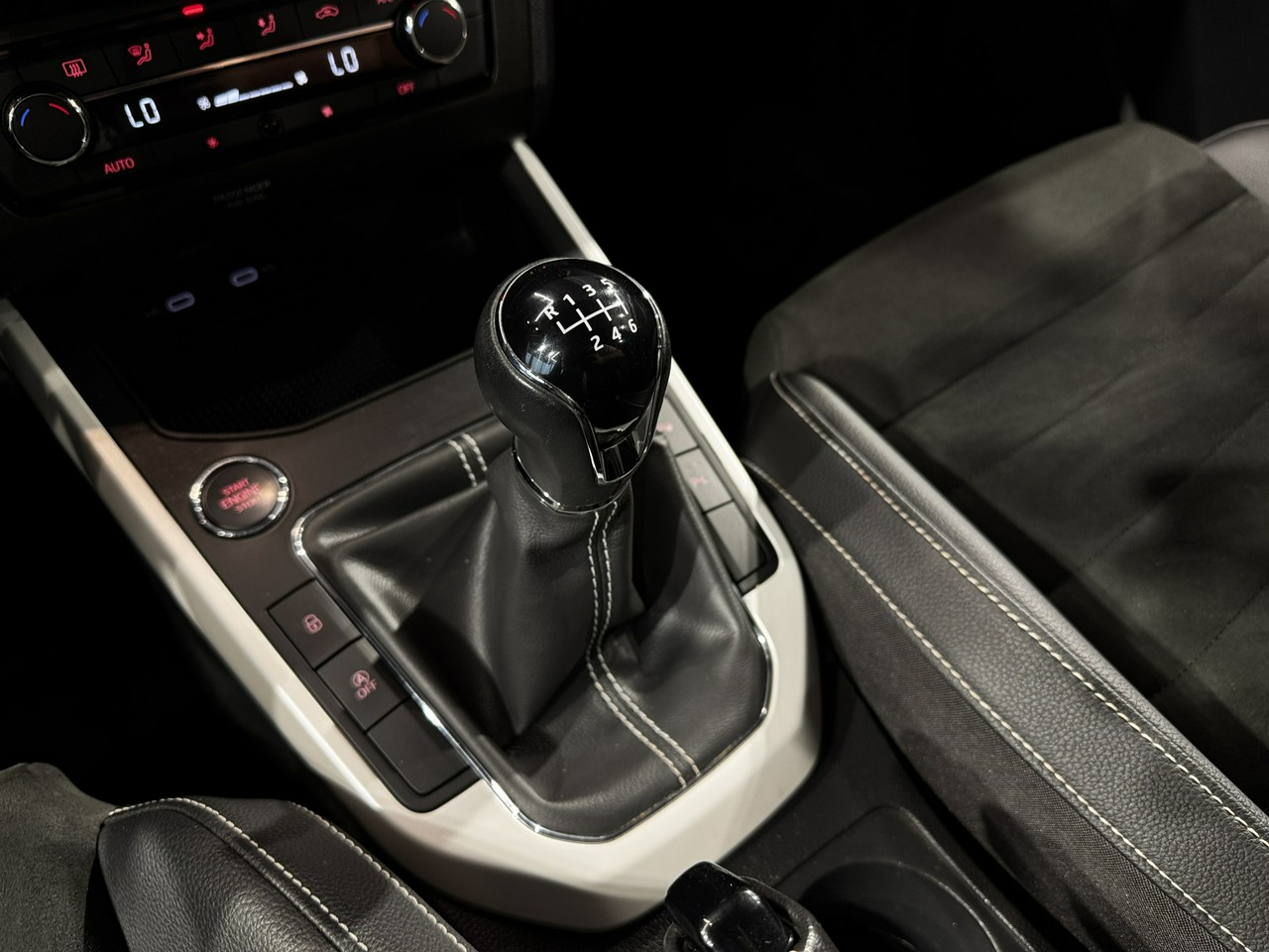 dźwignia zmiany biegów wykończona skórą,