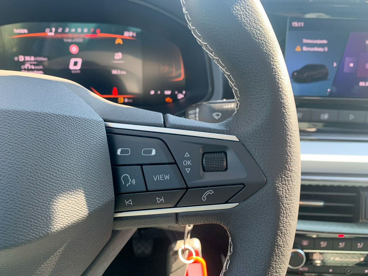 - Wielofunkcyjna, sportowa kierownica ze sterowaniem radiem i telefonem obszyta skórą