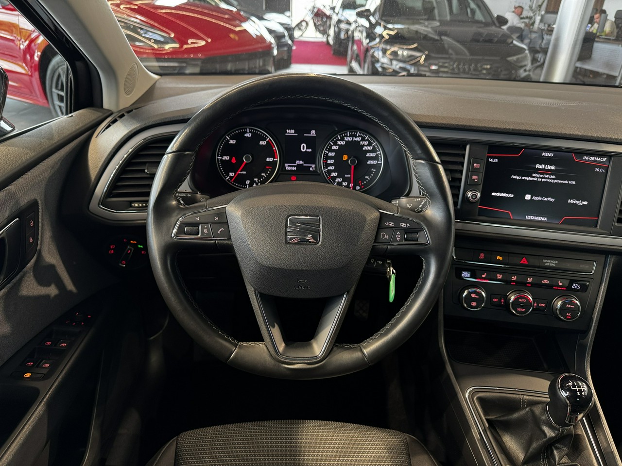 dźwignia zmiany biegów wykończona skórą,
