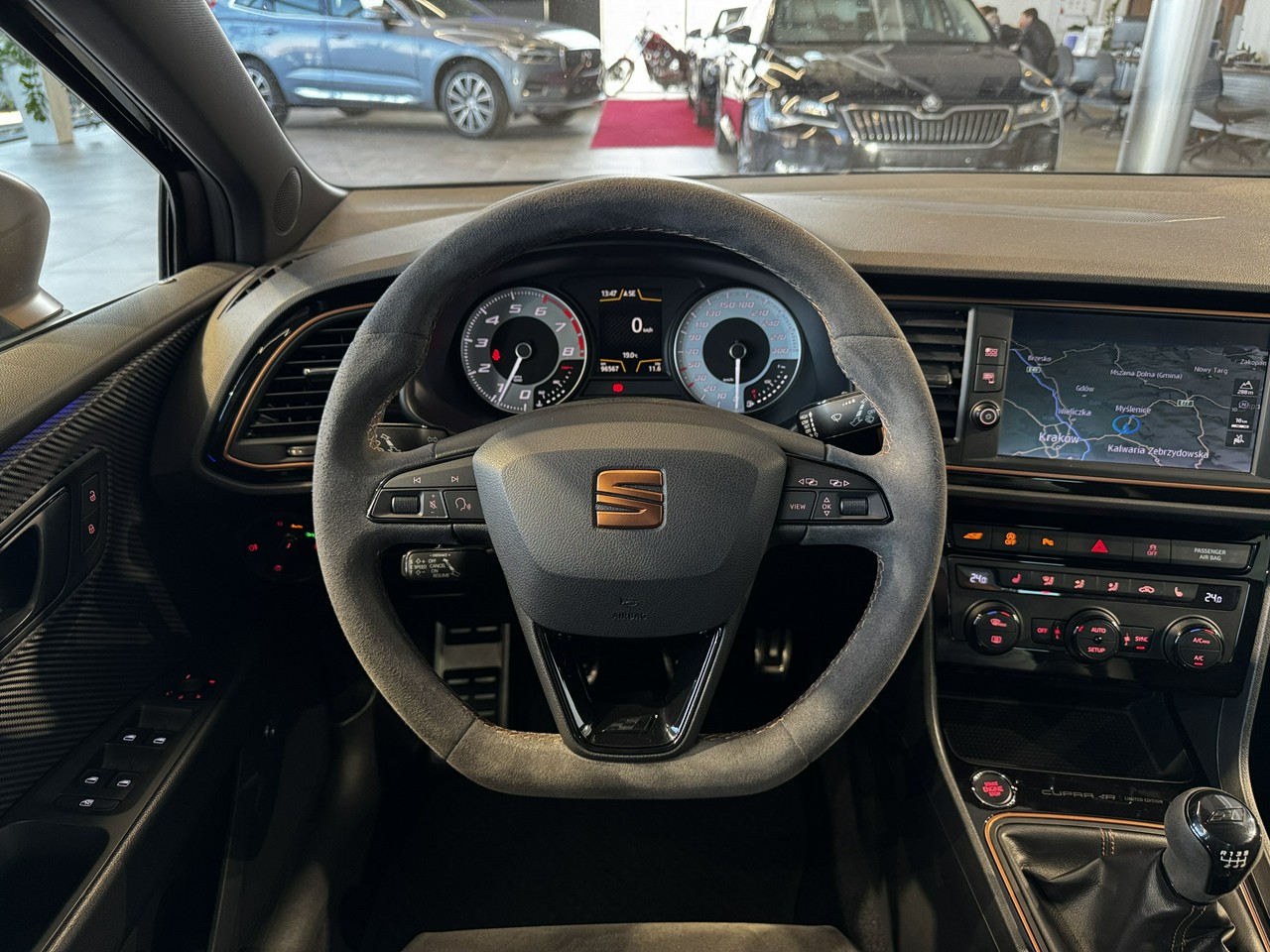 dźwignia zmiany biegów wykończona skórą,