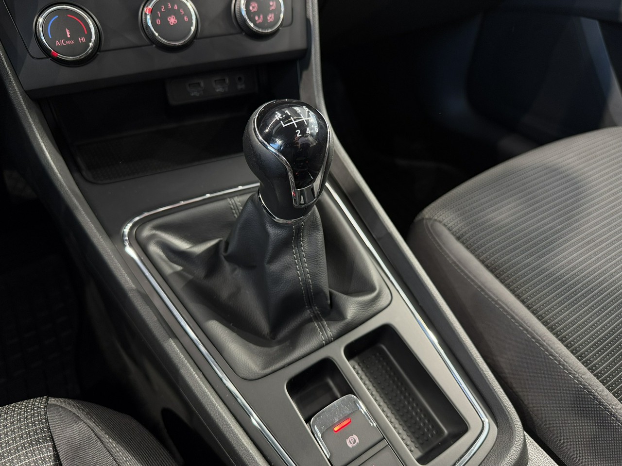 dźwignia zmiany biegów wykończona skórą,