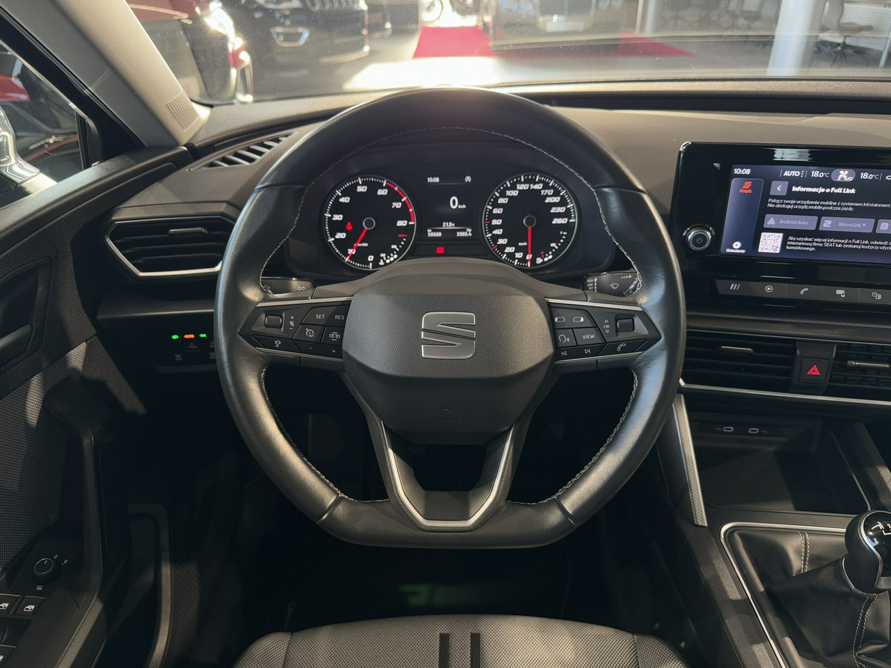dźwignia zmiany biegów wykończona skórą,