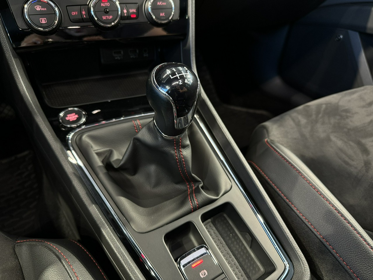 dźwignia zmiany biegów wykończona skórą,