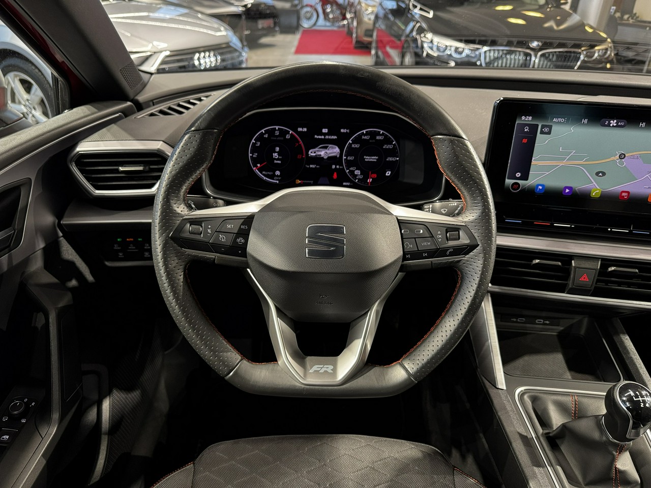 dźwignia zmiany biegów wykończona skórą,
