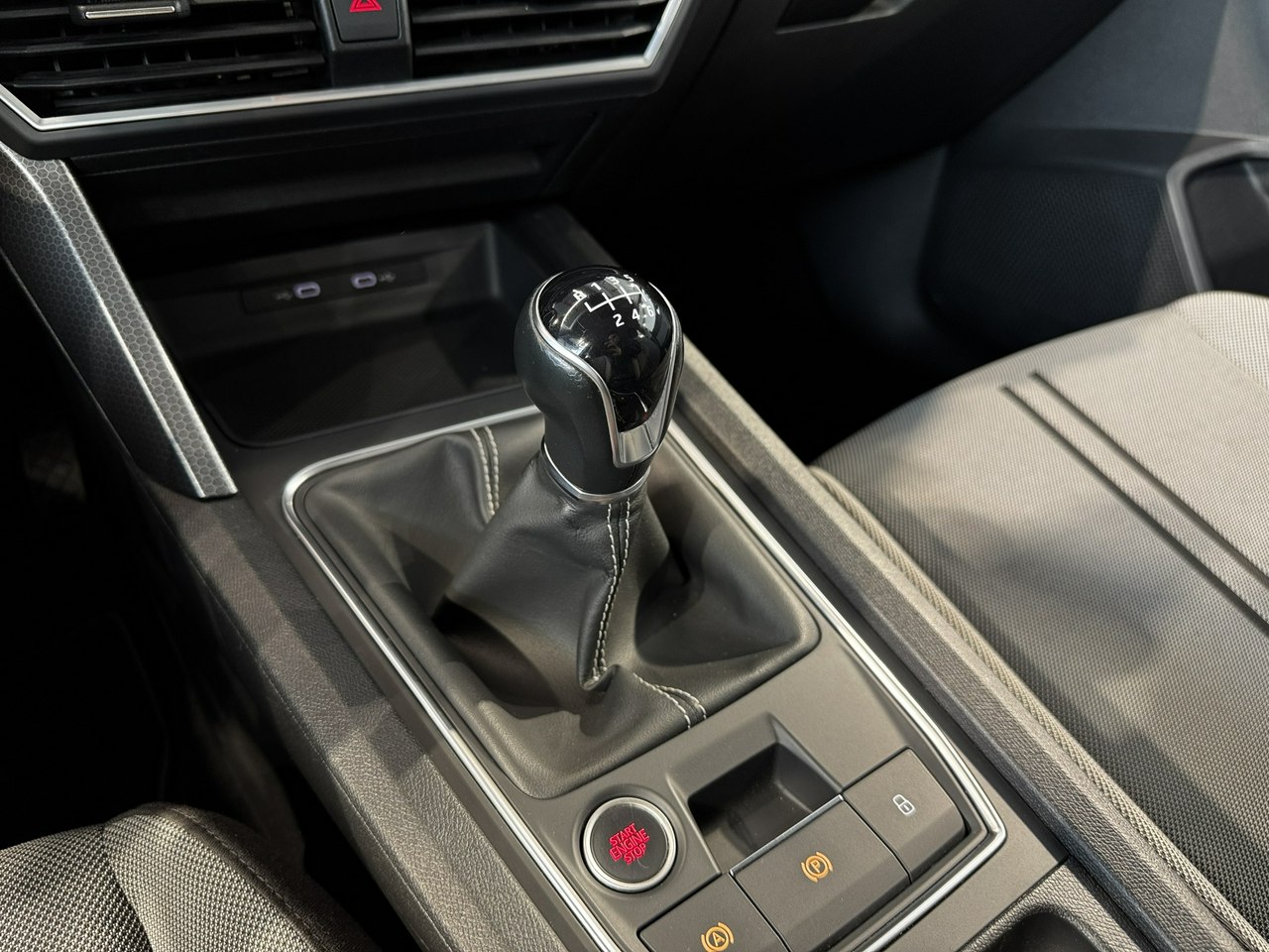 dźwignia zmiany biegów wykończona skórą,