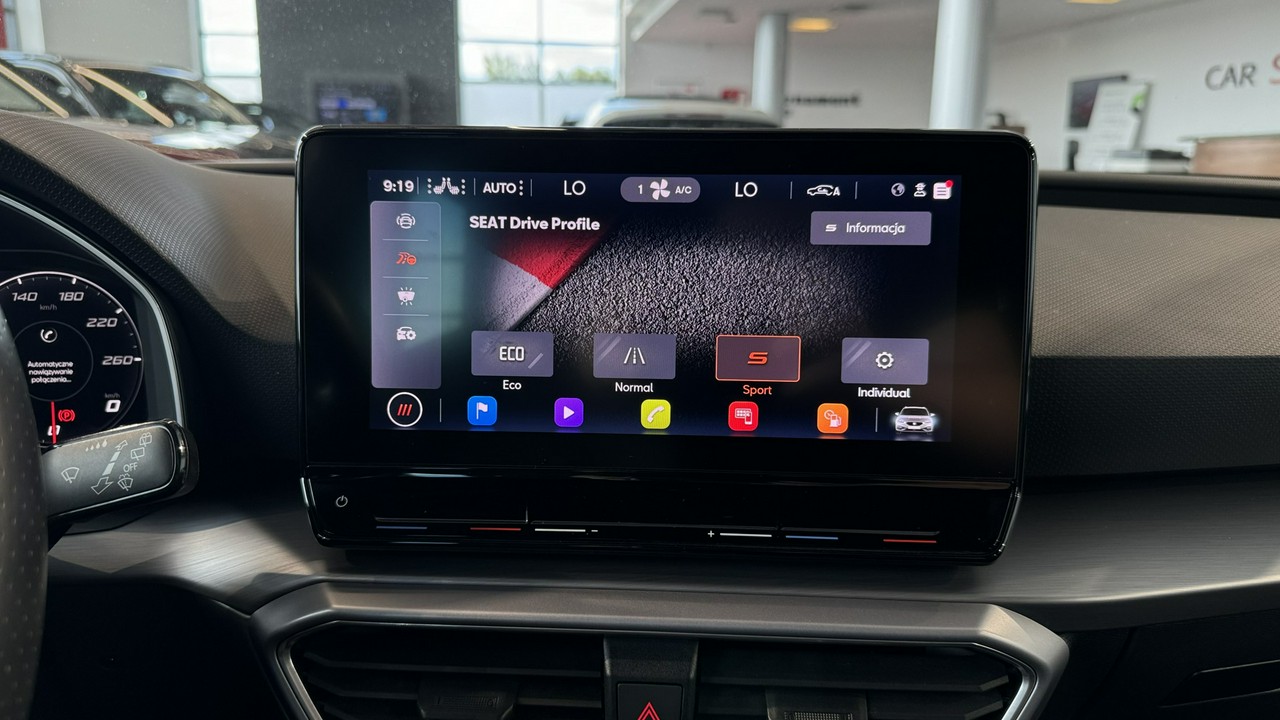 - dźwignia zmiany biegów wykończona skórą,