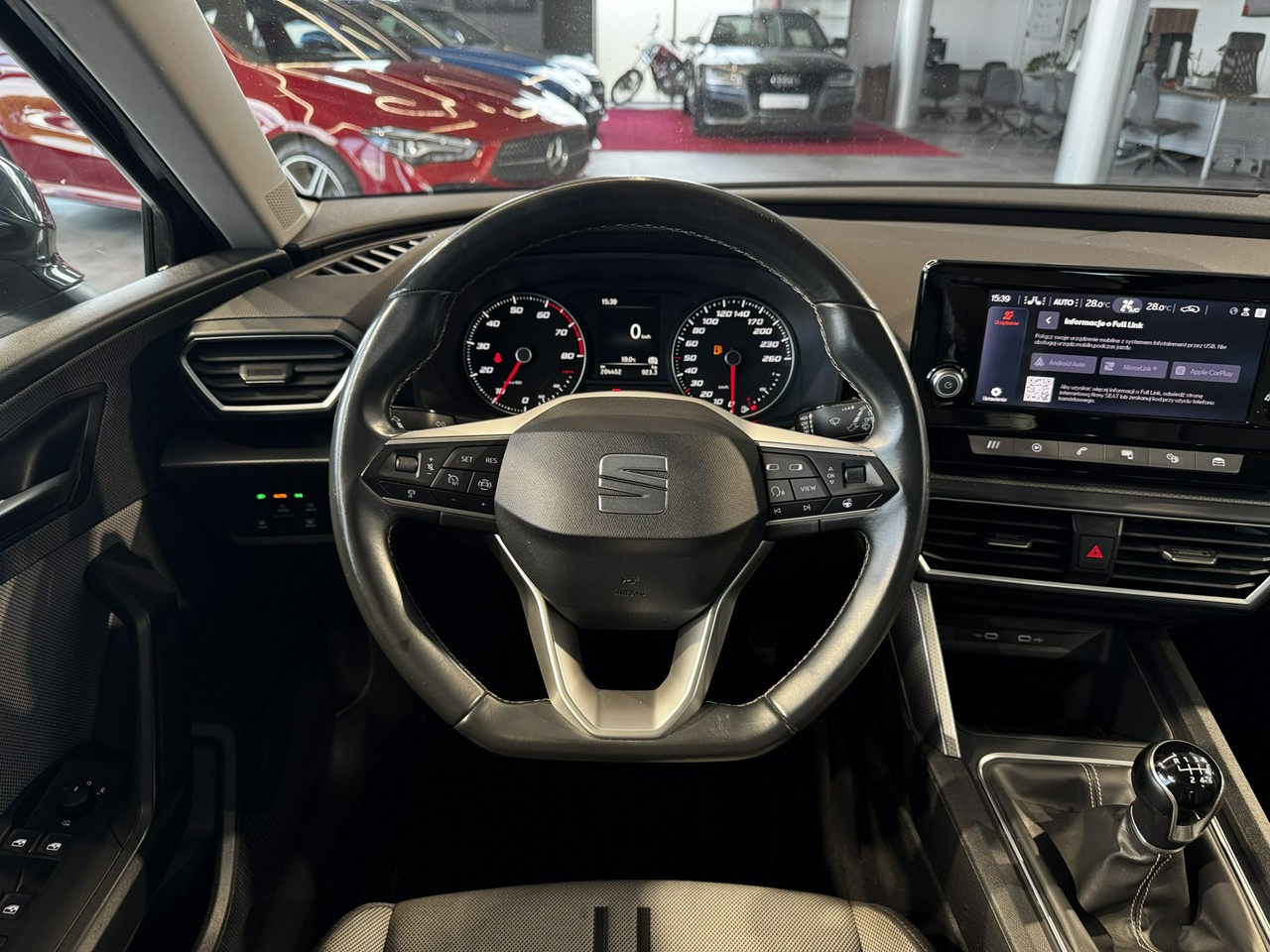 dźwignia zmiany biegów wykończona skórą,