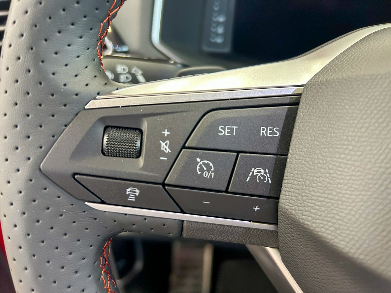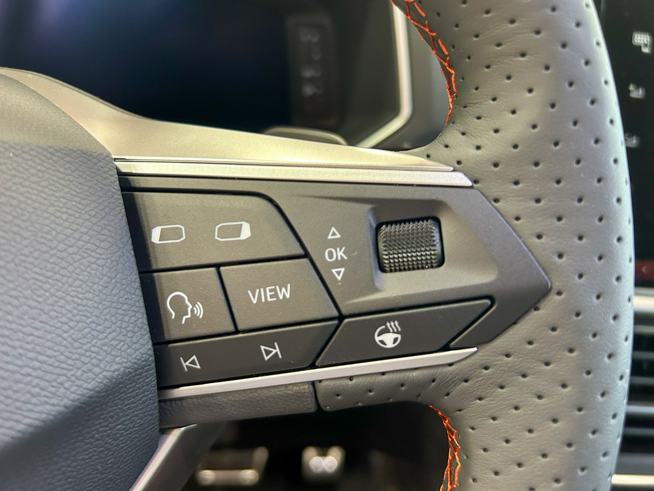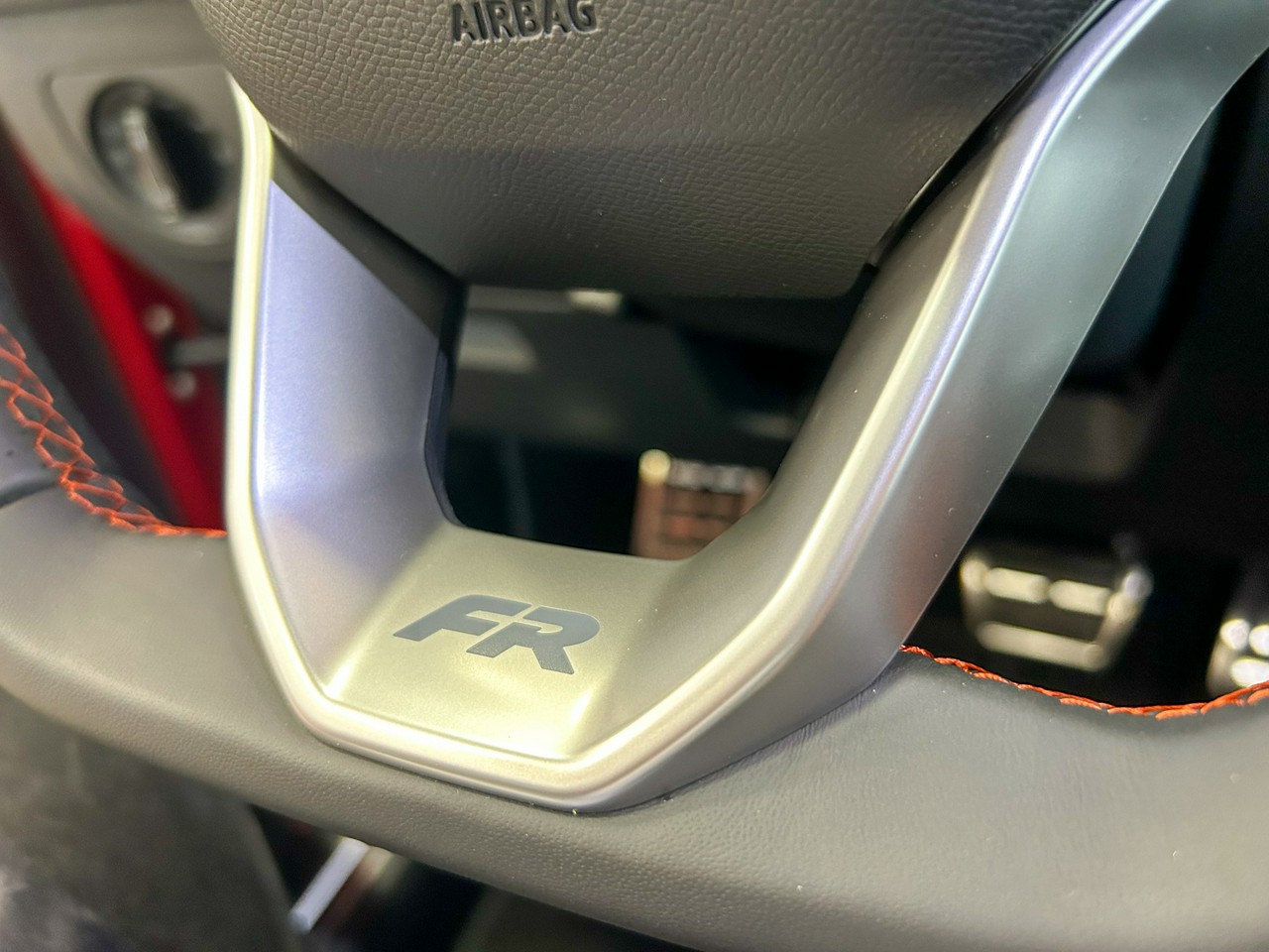 - Sportowa kierownica wielofunkcyjna z logo FR i elementy dźwigni zmiany biegów obszyte skórą z czerwonym przeszyciem
