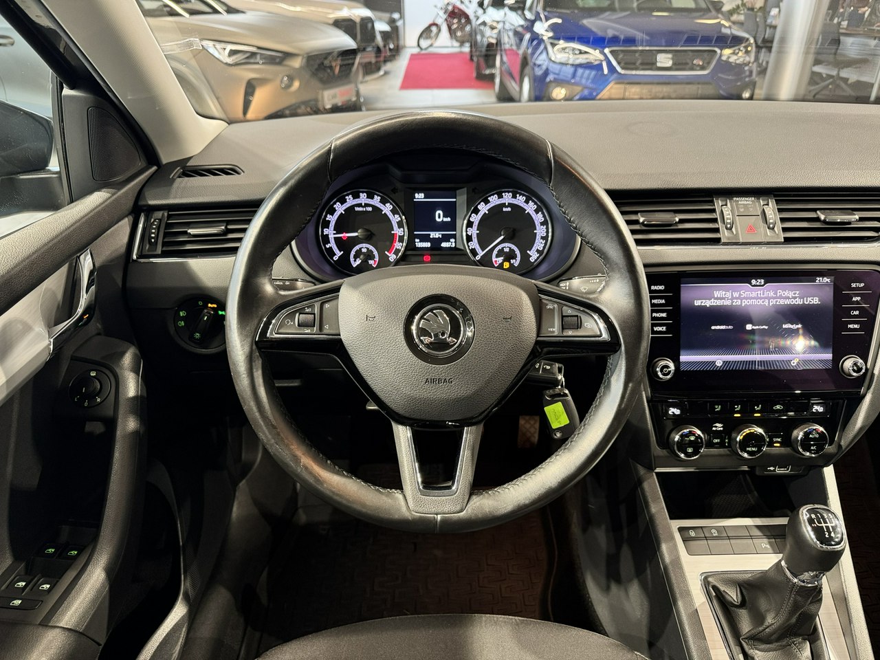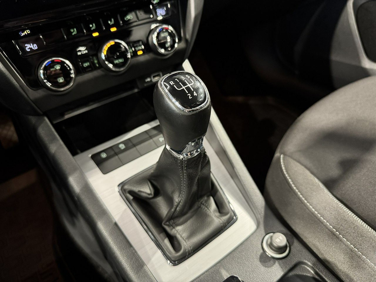 dźwignia zmiany biegów wykończona skórą,