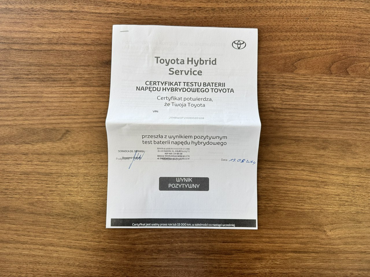 ✅ Pisemne potwierdzenie przebiegu