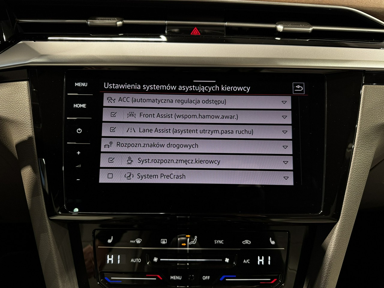 Lane Assist - kontrola zmiany pasa ruchu,