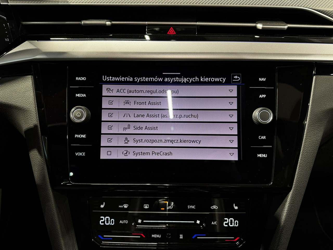 Lane Assist - kontrola zmiany pasa ruchu,