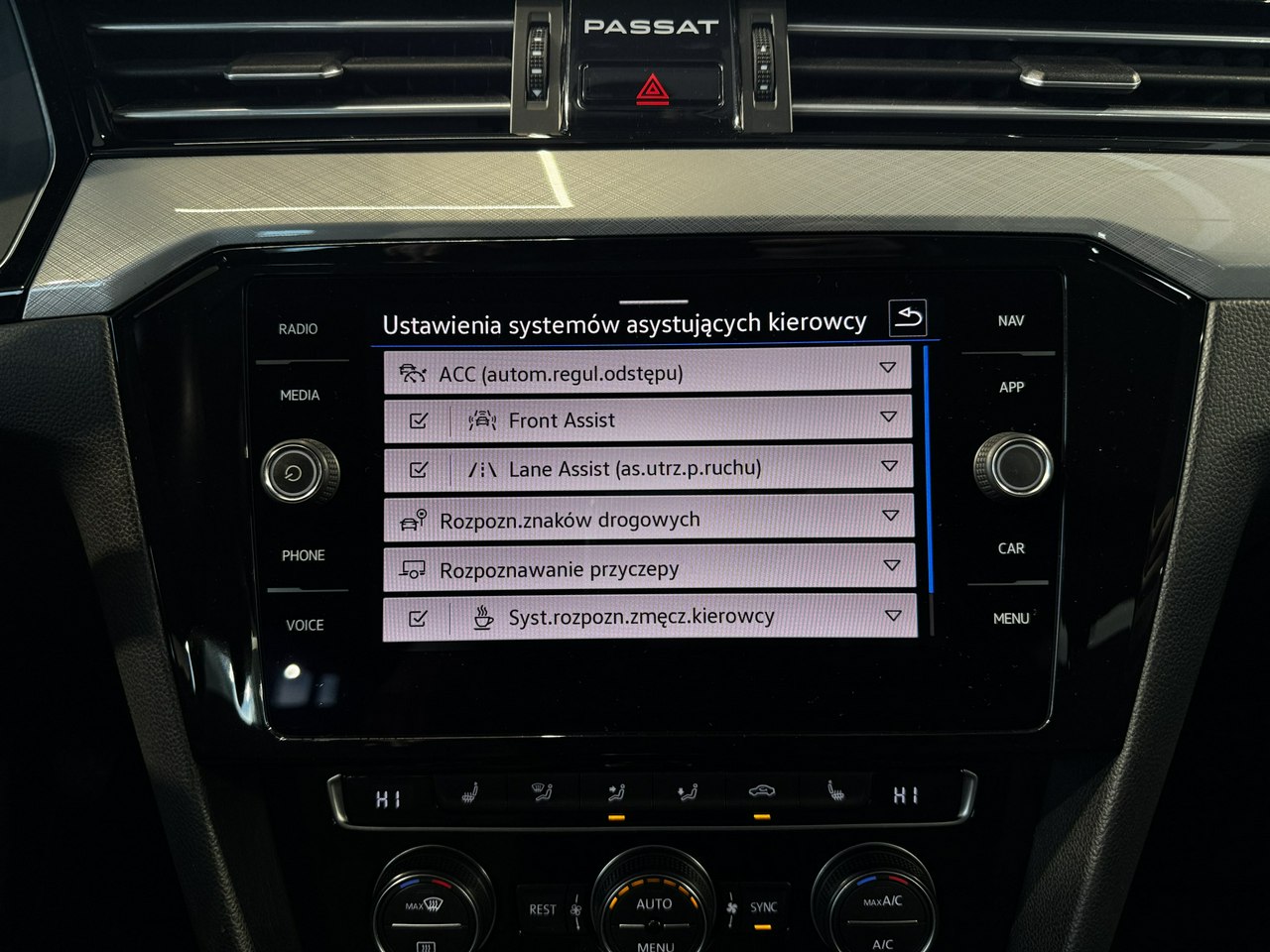 Lane Assist - kontrola zmiany pasa ruchu,