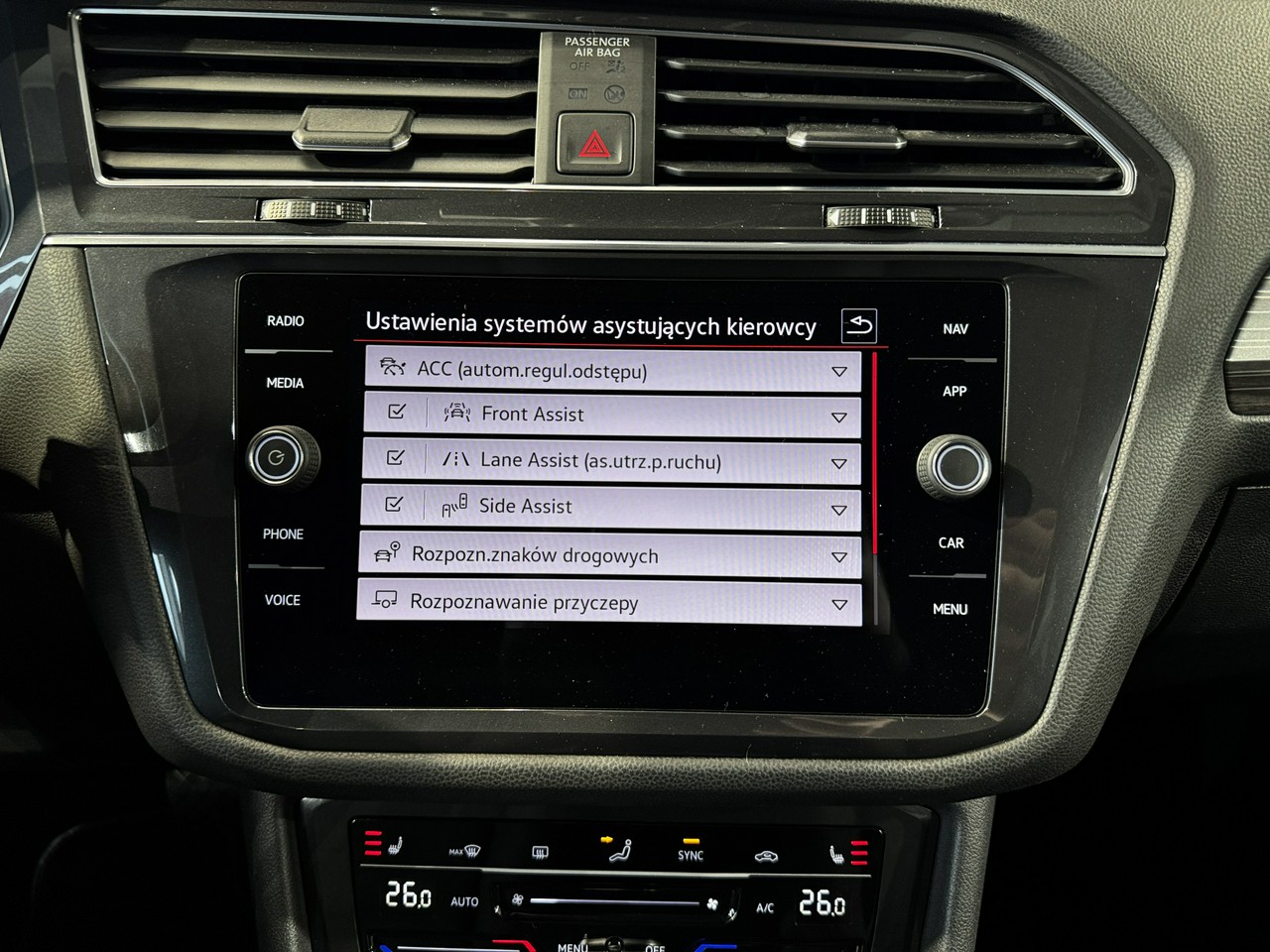 Lane Assist - kontrola zmiany pasa ruchu,