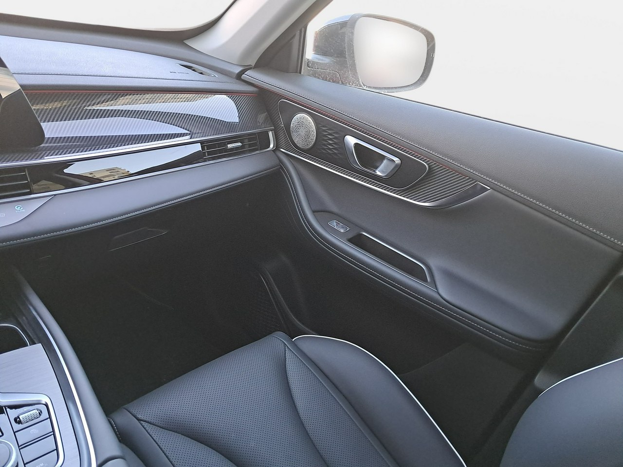 • Lusterka boczne z wbudowanymi lampkami wyświetlającymi logo na podłożu, z pamięcią położenia, Zaciski hamulcowe lakierowane na czerwono