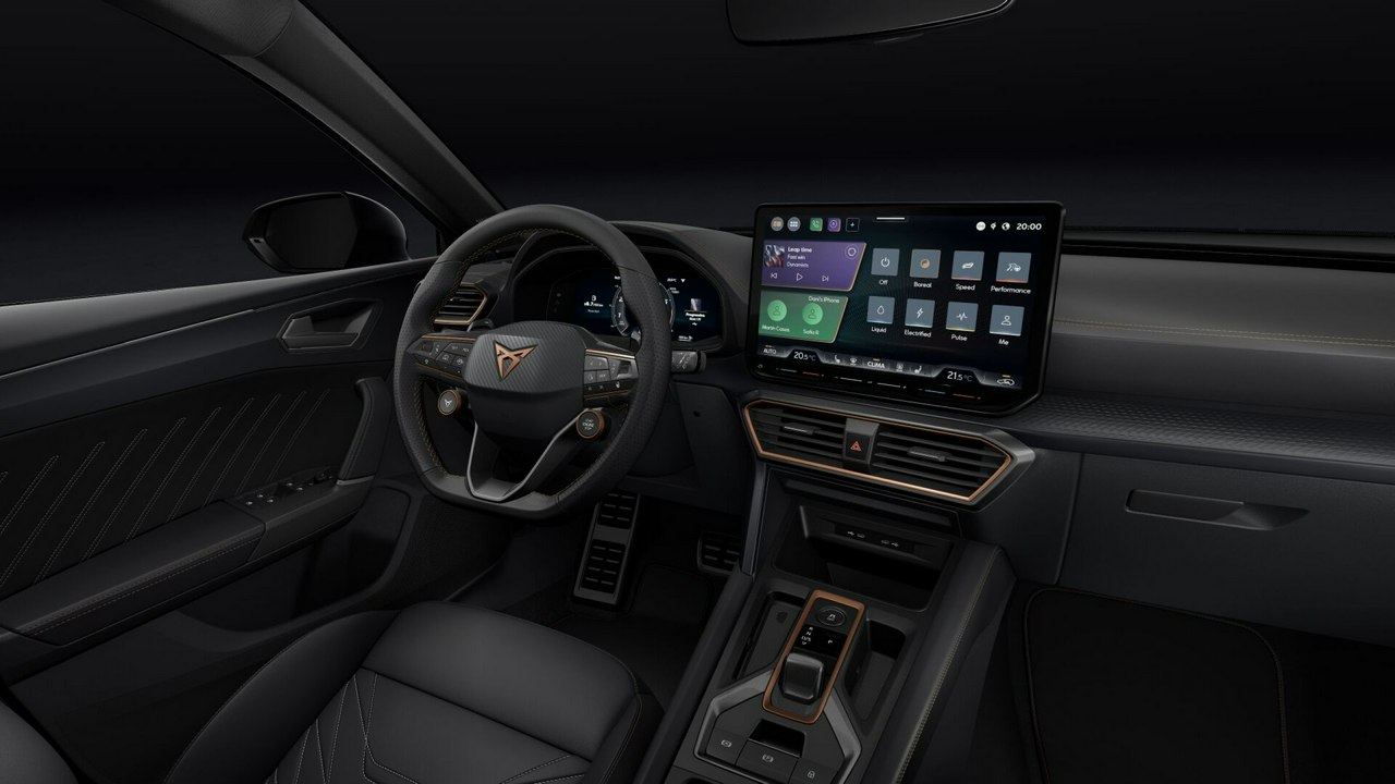 - Pakiet INTELLIGENT DRIVE: Navi System+, CUPRA Connect Plus (subskrypcja na 3 lata), Predykcyjny tempomat (ACC) z funkcją dostosowania prędkości jazdy do znaków drogowych i danych nawigacji, System monitorowania martwego pola Side Assist z funkcją wspomagania wyjazdu z miejsca parkingowego Exit Assist,