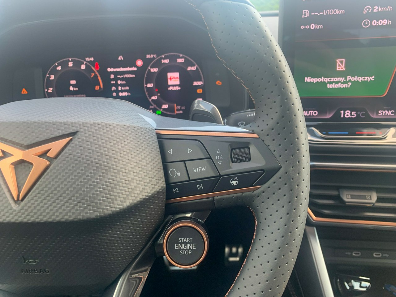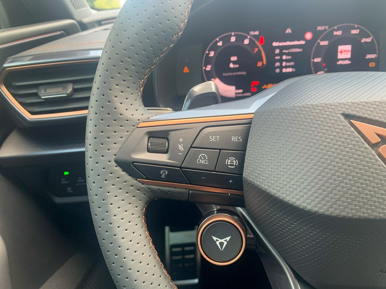 - Pakiet INTELLIGENT DRIVE: Nawigacja satelitarna z mapami z możliwością aktualizacji; CUPRA Connect Plus (subskrypcja na 3 lata); Predykcyjny tempomat (ACC) z funkcją dostosowania prędkości jazdy do znaków drogowych i danych nawigacji; System monitorowania martwego pola Side Assist z funkcją wspomagania wyjazdu z miejsca parkingowego; Sygnalizacja o zbliżającym się pojeździe w czasie wysiadania; System ochrony pasażerów; Asystent aktywnego utrzymania pasa ruchu; Asystent podróży z asystentem jazdy w korku; Inteligentny asystent bezpieczeństwa; Asystent zmiany pasa ruchu po włączeniu kierunkowskazu; Inteligentny asystent parkowania