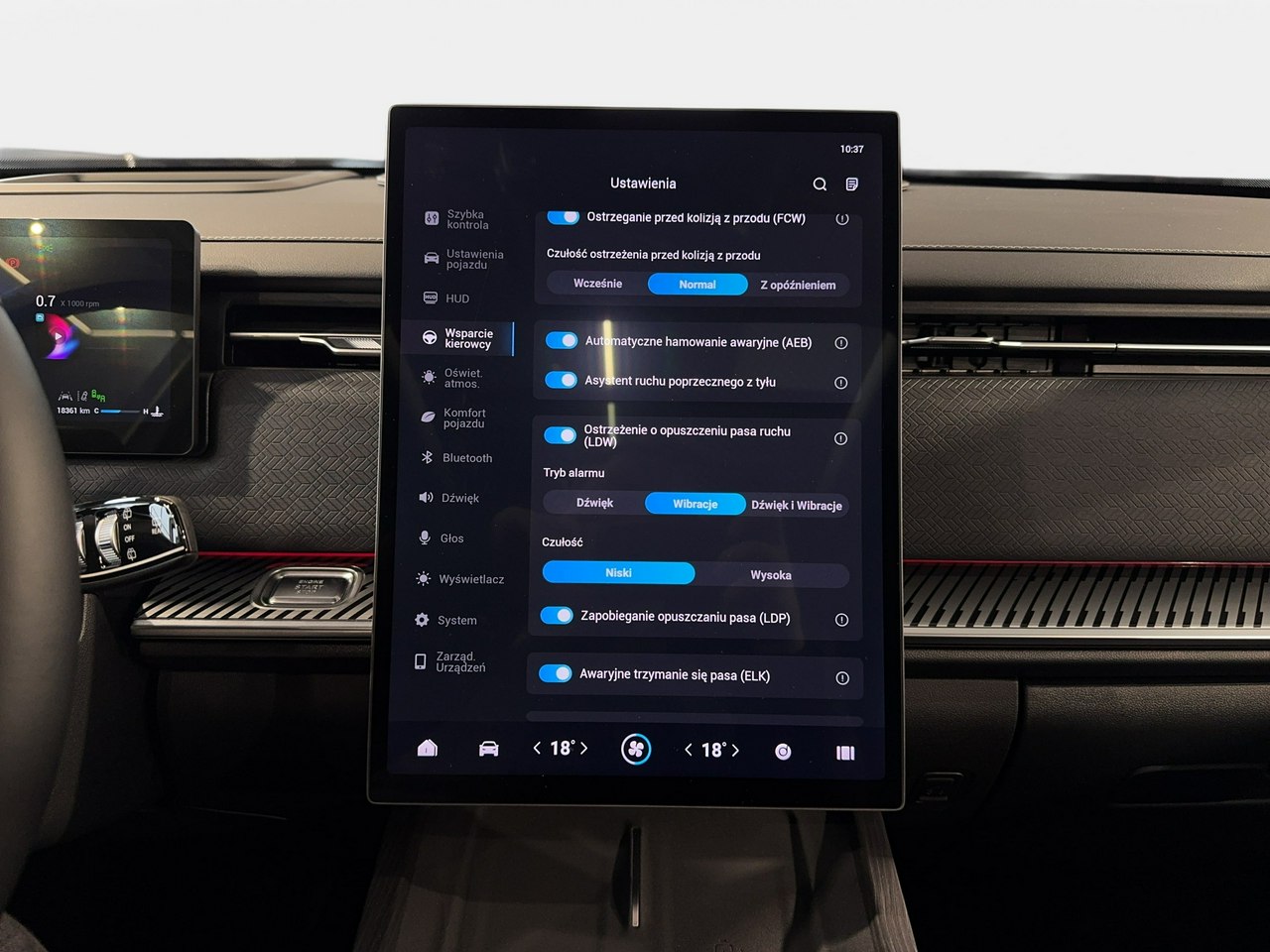 Lane Assist - kontrola zmiany pasa ruchu,