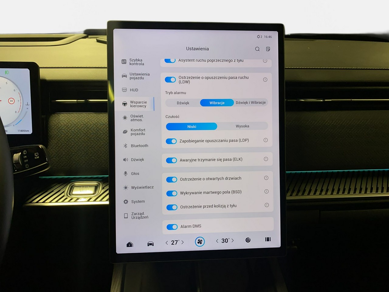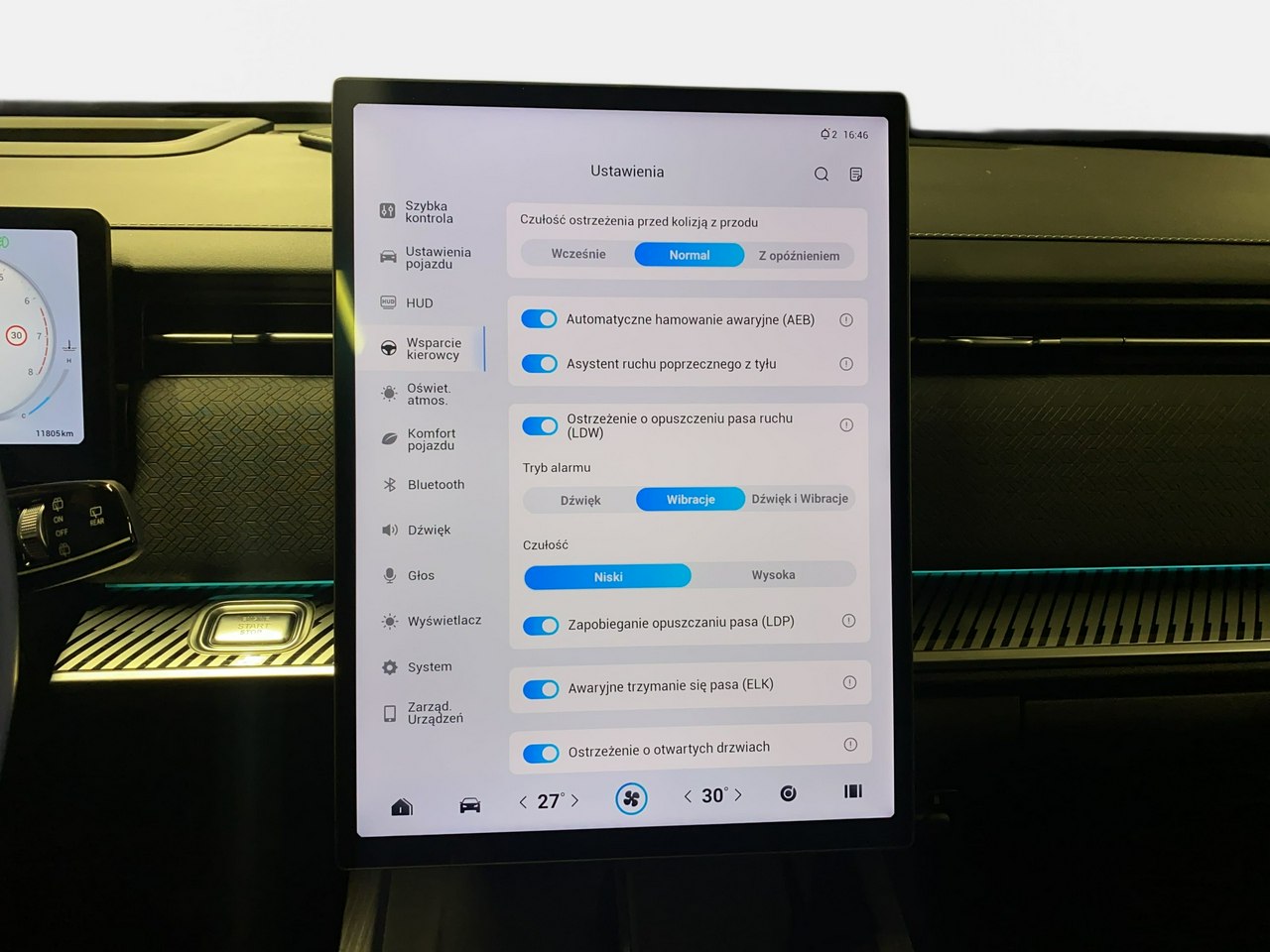 Lane Assist - kontrola zmiany pasa ruchu,