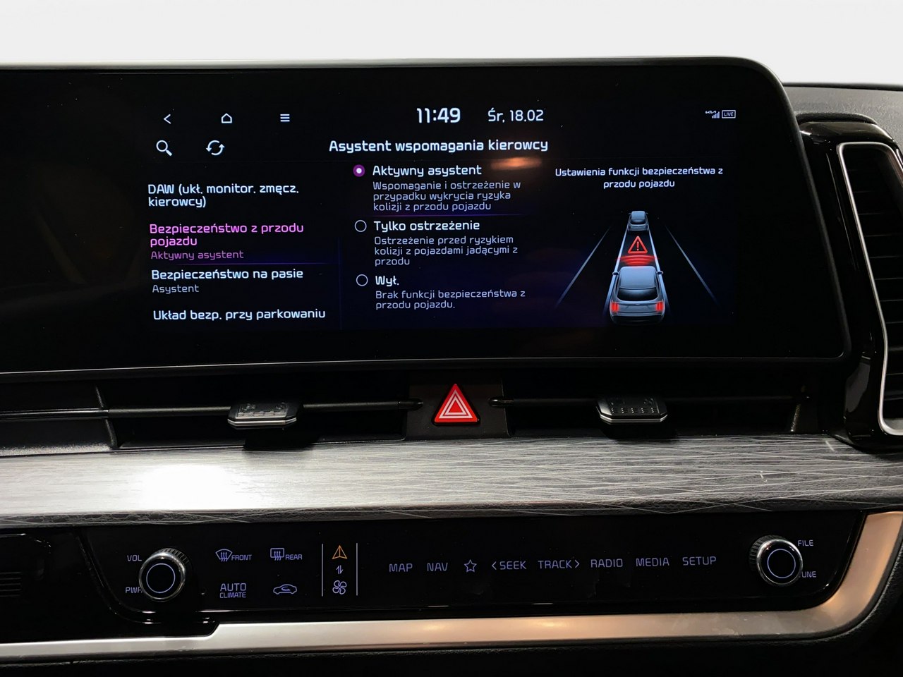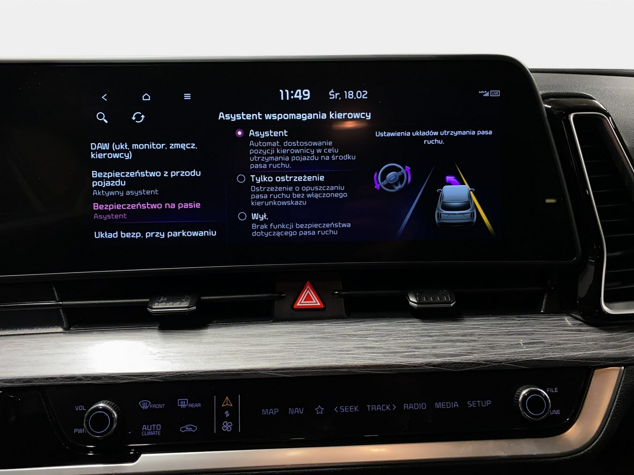 Lane Assist - kontrola zmiany pasa ruchu,