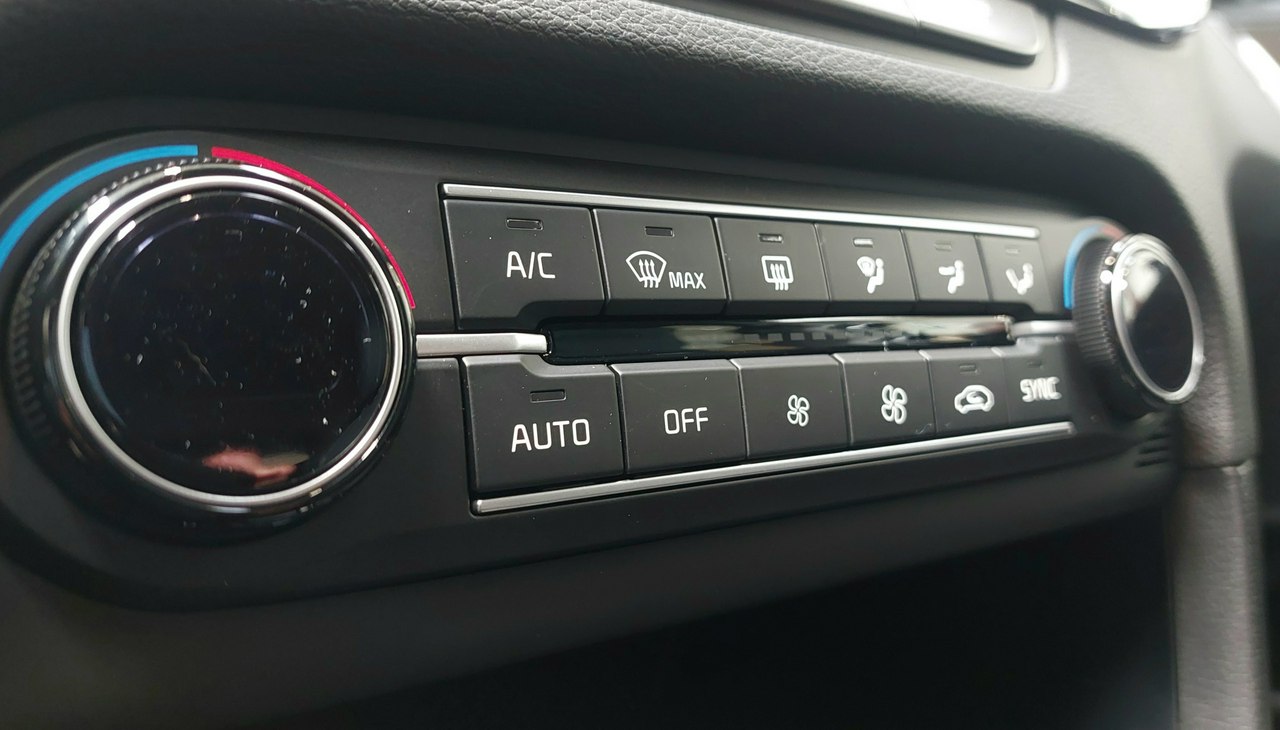 ▪ Klimatyzacja automatyczna dwustrefowa z wyświetlaczami w pokrętłach, funkcja automatycznego odparowywania przedniej szyby