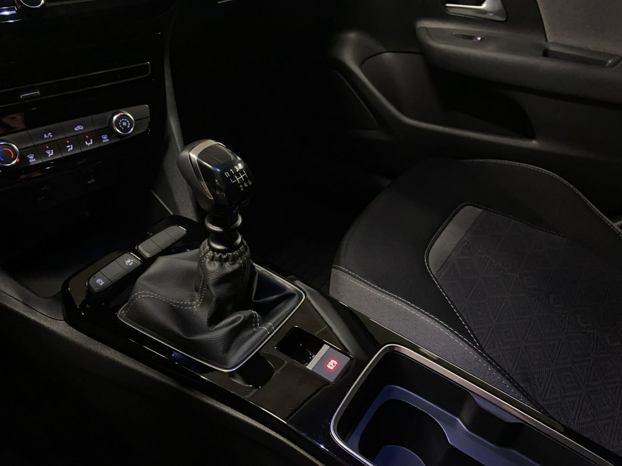 dźwignia zmiany biegów wykończona skórą,