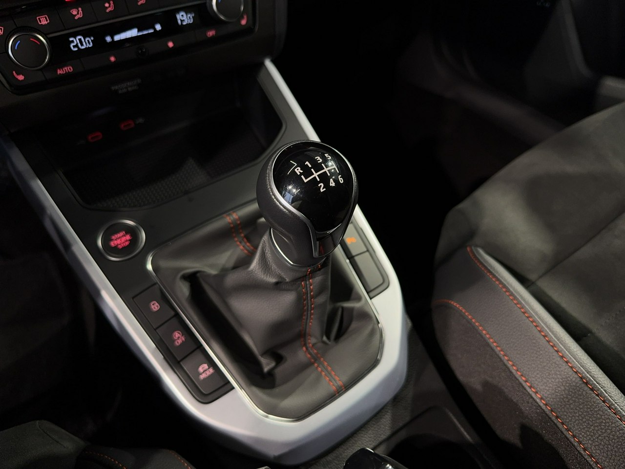 dźwignia zmiany biegów wykończona skórą,