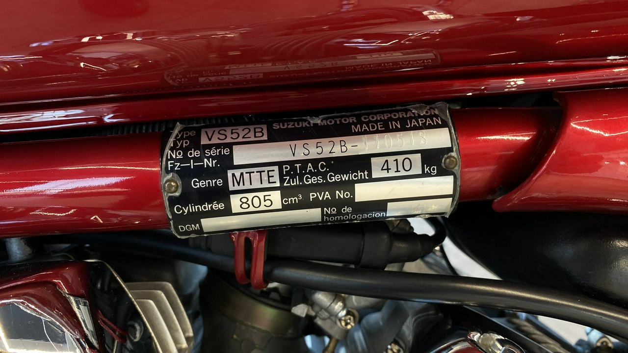 + VIN: VS52B-110518 (Vin podany w danych jest nieprawidłowy, ponieważ teraz są VIN'y 17-sto cyfrowe, a ten motocykl jest na tyle stary, że jeszcze ma VIN nieustandaryzowany)